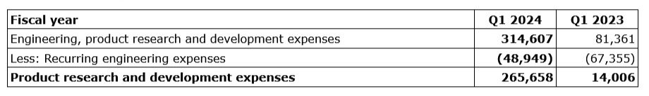 The table below, removes the recurring engineering expenses from the total to isolate the product research and development expenses excluded in Management's calculation of Operating EBITDA: