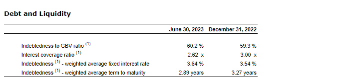 At the end of Q2 2023, the REIT had access to available funds of approximately $51,927, and a weighted average term to maturity of 2.89 years in its mortgage portfolio with a weighted average fixed interest rate of 3.64 per cent. During the first quarter, the REIT refinanced a total of $31,121 of mortgages, one with a fixed interest rate of 4.83 per cent (five-year term) and one with a variable interest rate at prime plus 1.5 per cent (one-year term), providing the REIT with additional liquidity of approximately $5,700.