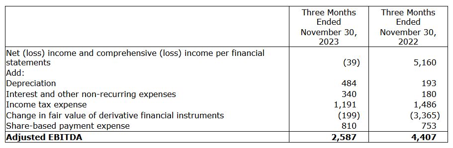 Strong gross profit margins: The Company recognized revenue of $9.4 million and cost of sales of $5.7 million, generating gross profit of $3.7 million, gross profit margin of 40%, and Adjusted EBITDA1 of $2.6 million.