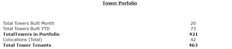 Tower One leases space on its towers to mobile network operators. The company is focused on the build to suit tower industry whereby
