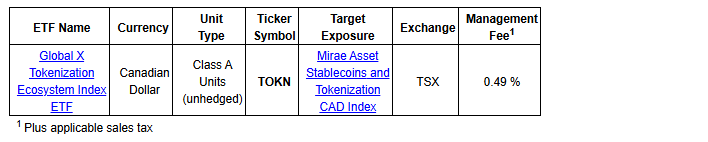 GLOBAL X LAUNCHES THE GLOBAL X TOKENIZATION ECOSYSTEM INDEX ETF