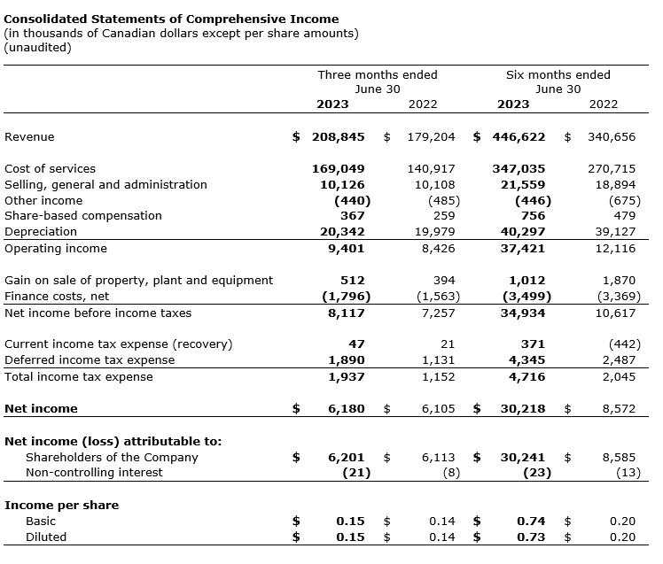 Total Energy Services Inc. has released its consolidated financial results for the three and six months ended June 30, 2023.