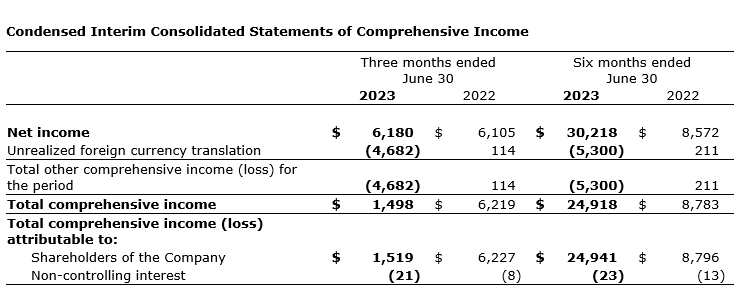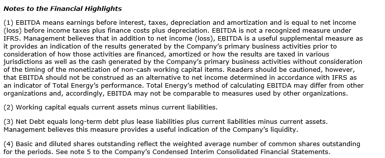 Selected financial information relating to the three and six months ended June 30, 2023, and June 30, 2022, is included in this news release. This information should be read in conjunction with the condensed interim consolidated financial statements of Total Energy and the notes thereto, as well as management's discussion and analysis, to be issued in due course and in the company's 2022 annual report.