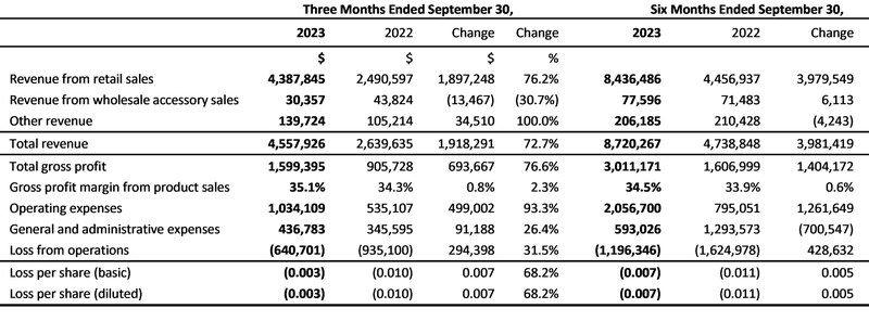 The results disclosed herein are a summary and are qualified in their entirety by reference to the company's condensed interim consolidated financial statements and accompanying notes for three- and six-month periods ended Sept. 30, 2023, and the 15-month period ended March 31, 2023, and related management's discussion and analysis of financial condition and results of operations, copies of which are available under the company's profile on SEDAR and the company's investor relations website.