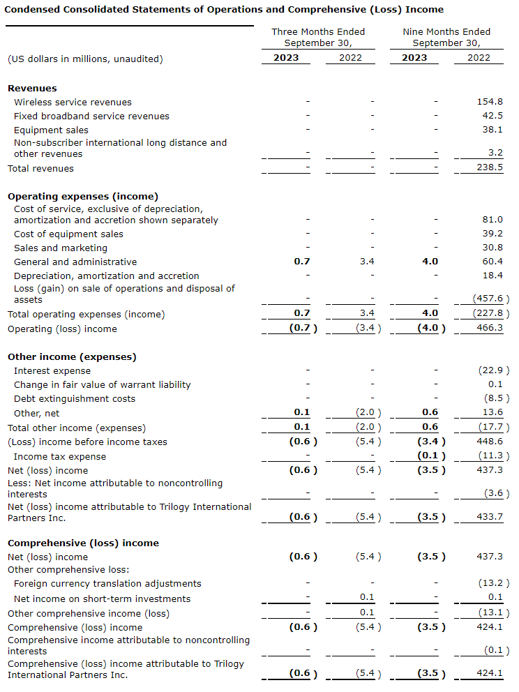 Trilogy International Partners Inc. has released its financial and operating results for the third quarter of 2023.
