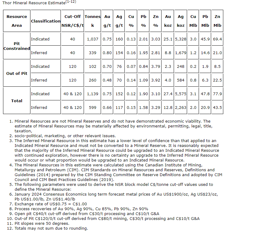 Taranis Resources Inc. has provided an updated mineral resource estimate (MRE) for its 100-per-cent-owned Thor project in British Columbia. The Thor project consists of approximately 3,800 hectares of mineral tenures, and 27 Crown grant mining claims. Taranis owns the minerals outlined in the mineral resource estimate update -- precious and base -- in fee simple.