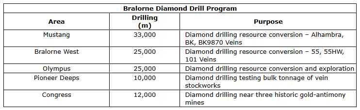 Talisker Resources Ltd. has increased its diamond drill program from 30,000 metres to 105,000 metres. The program will consist of 83,000 metres of resource conversion drilling at the Mustang, Bralorne West and Olympus areas and 22,000 metres of exploration drilling targeting veins at Congress and Pioneer Deeps.