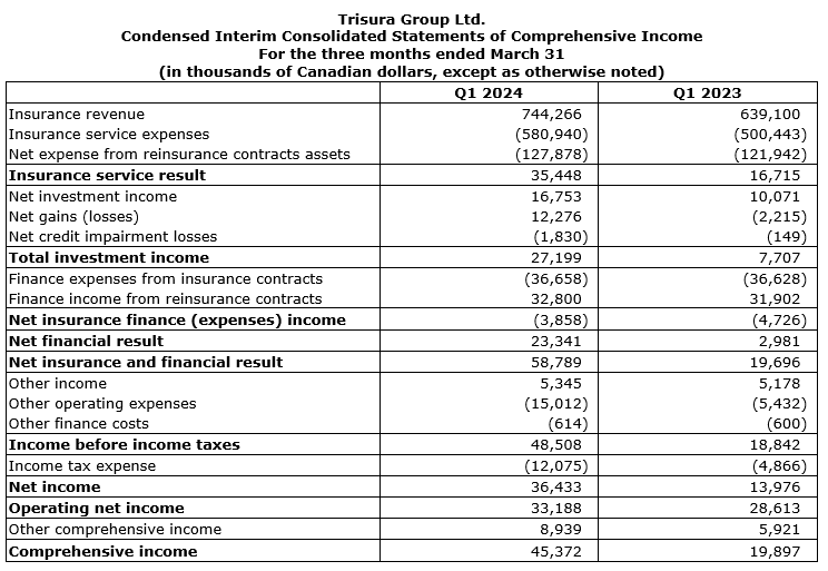 TRISURA GROUP REPORTS FIRST QUARTER 2024 RESULTS