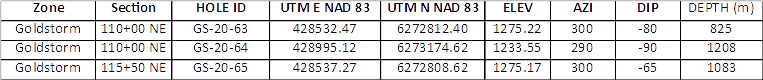 Table II Drill hole data for GS-20-63 to GS-20-65 of the Goldstorm Zone.
