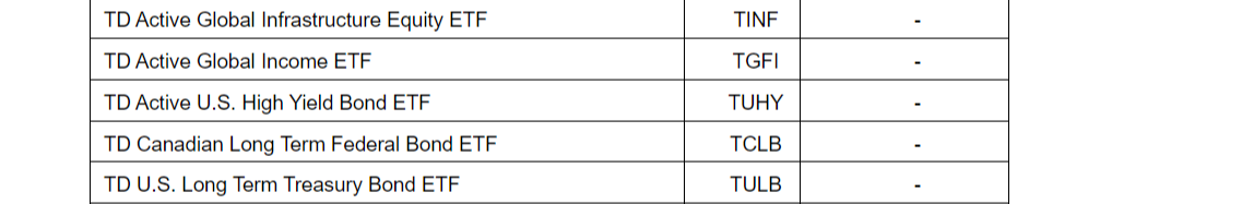 Toronto-Dominion Bank's TD Asset Management Inc. has declared the final annual 2023 reinvested distributions for certain TD exchange-traded funds (ETFs) listed in an attached table. These annual reinvested distributions generally represent realized capital gains within the TD ETFs. Cash distributions for December, 2023, will be distributed and reported separately.