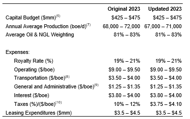 Subsequent to the first quarter, Tamarack disposed of certain non-core natural gas assets and decommissioning obligations for approximately $2.3-million in gross proceeds consisting of approximately 400 boe/d of production. Its 2023 annual production guidance range has been updated to 67,000 to 71,000 boe/d accounting for the disposition and the unplanned production downtime during the first quarter. Tamarack will provide further updates regarding the impact of the wildfires as additional information becomes available. Its operating cost, transportation expense, royalty, general and administrative expense, and interest guidance range remains unchanged.