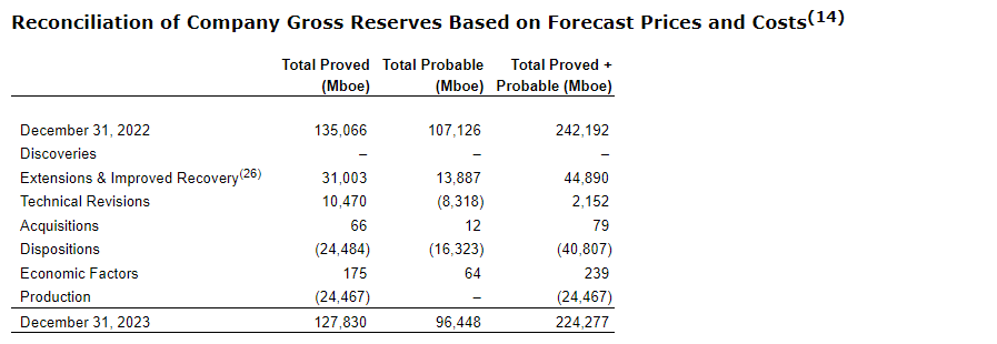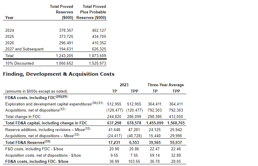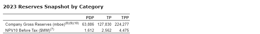 -- overall liquids weighting increased YoY by 7 per cent, with 2023 TPP reserves composed of 85 per cent oil and NGLs, and 15 per cent natural gas.