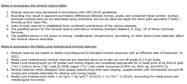 Additional information on the Morelos complex, including, but not limited to, sampling and analyses, analytical labs, and methods used for data verification is available in the company's most recent annual information form (AIF) dated March 30, 2023, and the technical report, entitled, "Morelos Property, NI 43-101 Technical Report, ELG Mine Complex Life of Mine Plan and Media Luna Feasibility Study, Guerrero State, Mexico," dated effective March 16, 2022, filed on March 31, 2022, on SEDAR+ and the company's website.