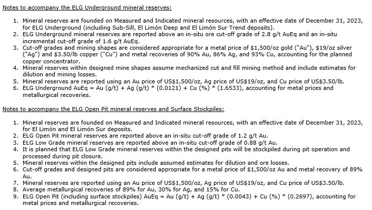 Metal prices used in the estimation of mineral reserves have increased relative to year-end 2022. Higher metallurgical recoveries for ELG underground reflect the increased proportion of reserves to be processed through the upgraded processing plant starting in late 2024 relative to the proportion anticipated at year-end 2022, including improved Cu and Ag recoveries due to the installation of copper and iron sulphide flotation circuits as part of the Media Luna project.