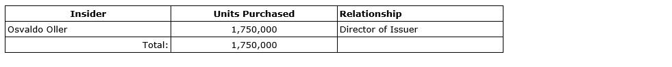 Insiders of the company subscribed for units under the offering, as shown in the attached table.