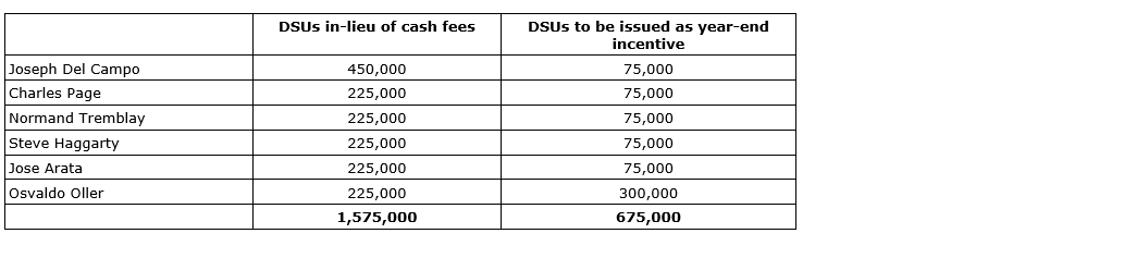 Unigold Inc. has granted deferred share units (DSUs) to independent directors on account of certain director fees in lieu of cash. In addition, the company has granted incentive DSUs to independent directors. All DSUs will be priced at 20 cents.