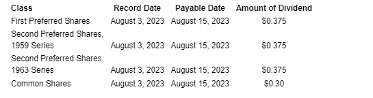 UNITED CORPORATIONS LIMITED ANNOUNCES DIVIDENDS