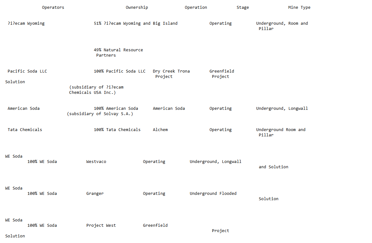 Soda ash is produced either synthetically or naturally through various mining methods. Natural and synthetic Soda ash are chemically identical and are interchangeable within the vast majority of industrial applications for which they are used. Natural Soda ash is generally regarded as having a meaningfully lower cash cost of production than synthetic Soda ash, primarily due to its lower energy intensity and reduced raw material input costs. It is also typically viewed as a more environmentally favorable production route.