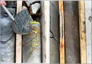 Plate 1: (left) Native copper in drillhole CMR23-152 at 177.6 m downhole (Southwall Zone 1).