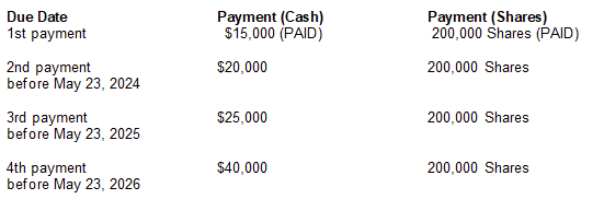 The TSX Venture Exchange has accepted for filing documentation the option agreement dated July 31, 2023, between the company and three arm's-length parties. Pursuant to the terms of the agreement, the company has been granted the exclusive option to acquire an undivided 100-per-cent interest in 141 unpatented mining claims located in the Thunder Bay mining division of Ontario (the Rubidium Ridge property). In consideration to exercise the option to acquire the Rubidium Ridge property, the company will provide the vendor with payments of cash and common shares of the company according to the schedule provided in the attached table.