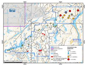 - Presence of lake sediment anomalies (Lithium/Cesium) in the northeast part of the Project, indicating the potential for LCT mineralization.