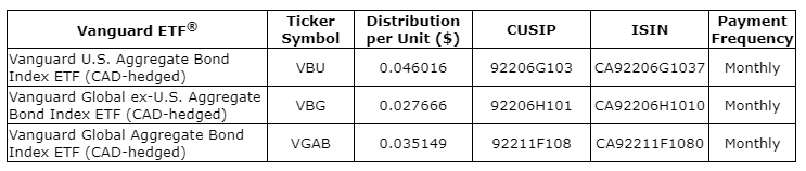 See News Release (C-VBU) Vanguard US Aggregate Bond Index ETF (CAD-hedged)
