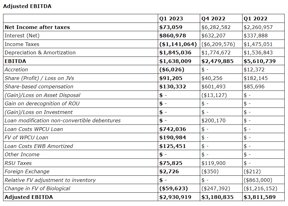 Vext Science Inc. has released its financial results for the period ended March 31, 2023. All currency references used in this news release are in United States dollars unless otherwise noted.