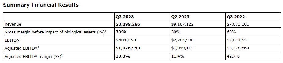 Vext Science Inc. has released its financial results for the period ended Sept. 30, 2023. All currency references used in this news release are in United States dollars unless otherwise noted.