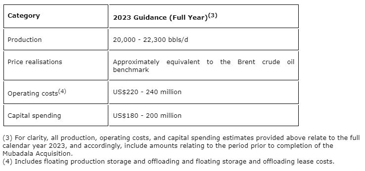 At the same time, assumptions including price realisations and operating costs are trending in line with the Company's guidance assumptions. Valeura's first full quarter of operations including production from the Mubadala Acquisition Assets will be the quarter ending June 30, 2023, which will be reported in August 2023.