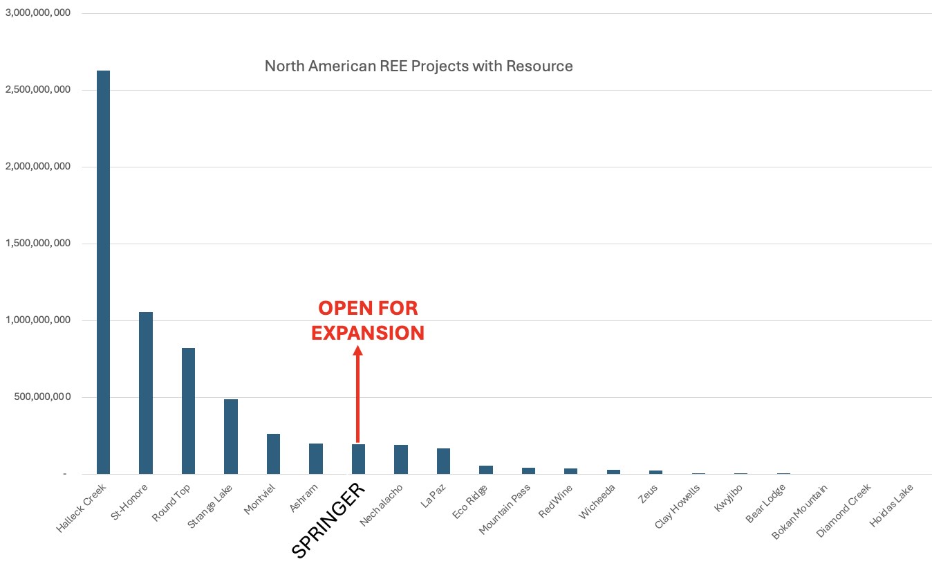 The material increase in the Springer MRE highlights the Deposit's quality, scale and continued growth potential, elevating its standing among the top 10 rare earth element ("REE") deposits* in North America (Figure 1 and Figure 2).