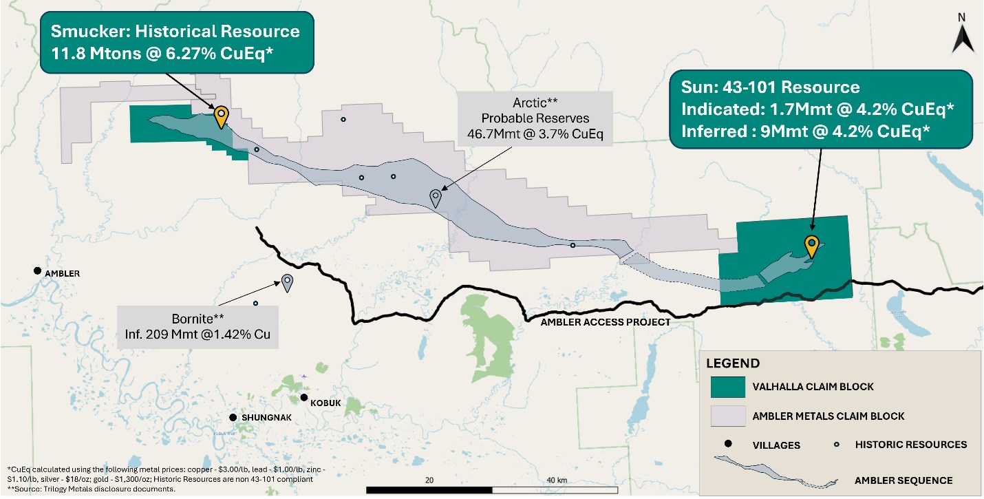 Rick Van Nieuwenhuyse, Chairman of Valhalla stated, "This transaction is a transformative milestone for Valhalla, effectively providing the Company with the scale to contribute meaningfully to the development of the Ambler Mining District. By combining these two projects, we see the potential to move quickly to materially support the economic use case for the proposed Ambler Access Project, which, we believe, is key to unlocking this prospective critical-metals district. We are very pleased to welcome Teck as a key partner - Teck brings a long and successful operating history in Alaska, and we look forward to working together to develop these important projects towards providing new secure, domestic sources of critical minerals for the United States."