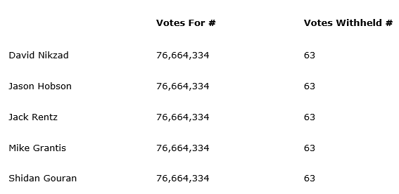As a result of the 2023 AGM, the following directors have been elected or re-elected to the board of directors: