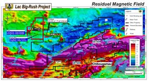 Map of Lac Big-Rush property location within regional magnetic survey compilation (Source: MERNF).
