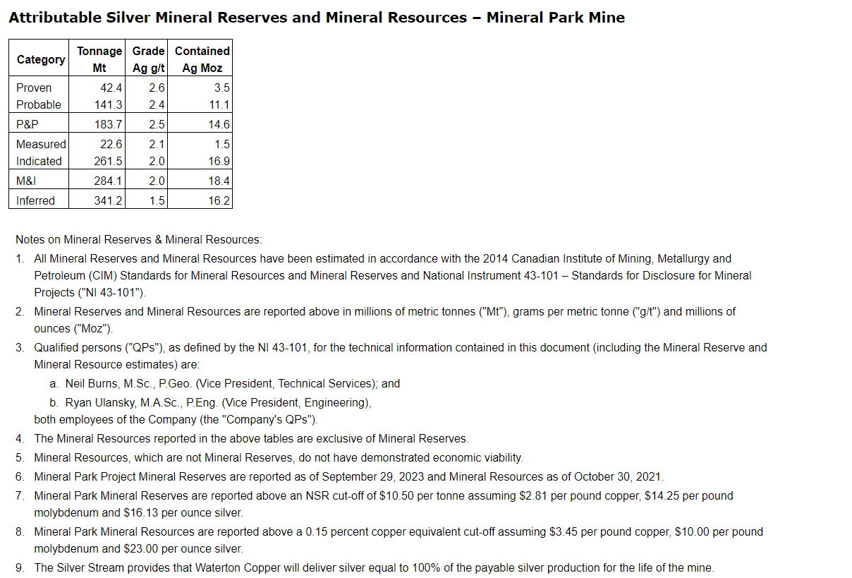 Incremental reserves and resources: The addition of Mineral Park will increase Wheaton's total estimated proven and probable mineral silver reserves by 14.6 million oz, measured and indicated mineral silver resources by 18.4 Moz, and inferred silver resources by 16.2 Moz.