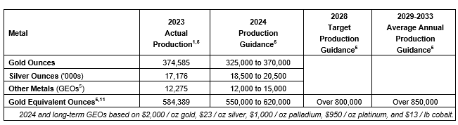 Achieved annual production guidance for 2023 of 600,000 to 660,000 gold equivalent ounces, with sector-leading growth over the next five to 10 years;