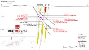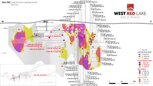 Longitudinal sections showing all intercepts > 3 g/t Au on Veins 101, 102 and 103 can be viewed here: https://westredlakegold.com/august-1st-news-release-maps/.