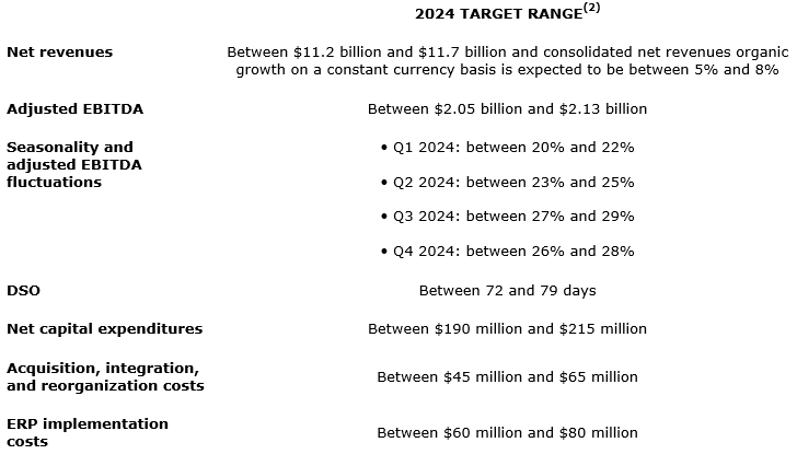Management expects the WSP Global's results for the year ending Dec. 31, 2024, will fall within the following ranges.
