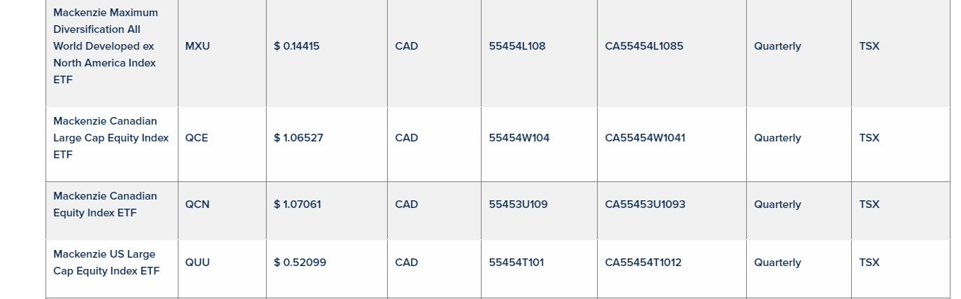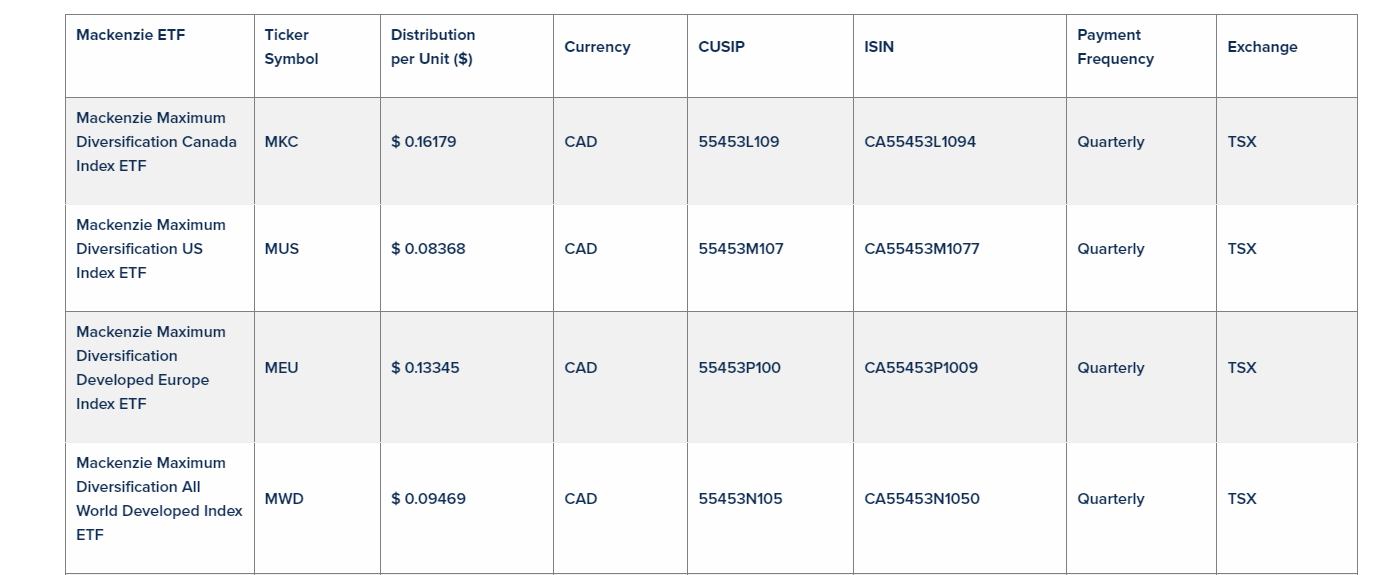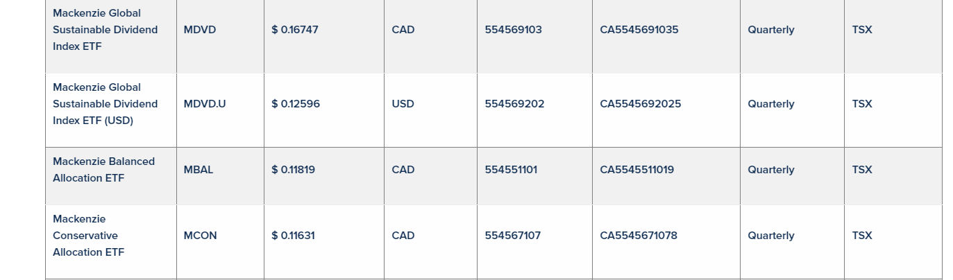 Mackenzie Investments has declared the September, 2023, quarterly cash distributions for its equity exchange-traded funds listed in an attached table that trade on the Toronto Stock Exchange and Cboe Canada. Unitholders of record on Sept. 19, 2023, will receive cash distributions payable on Sept. 26, 2023.