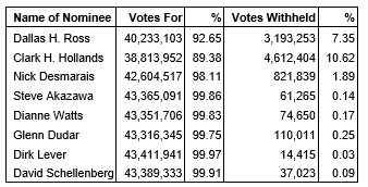 The following were the results to appoint KPMG LLP as auditor of the corporation.