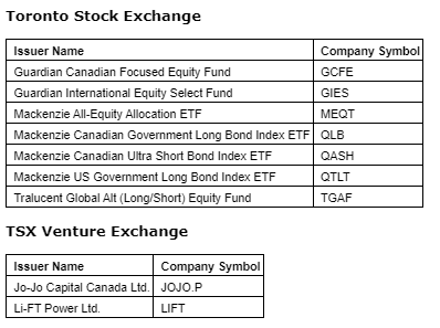 TMX Group welcomes the companies that listed during November, 2023, as shown in the attached tables.