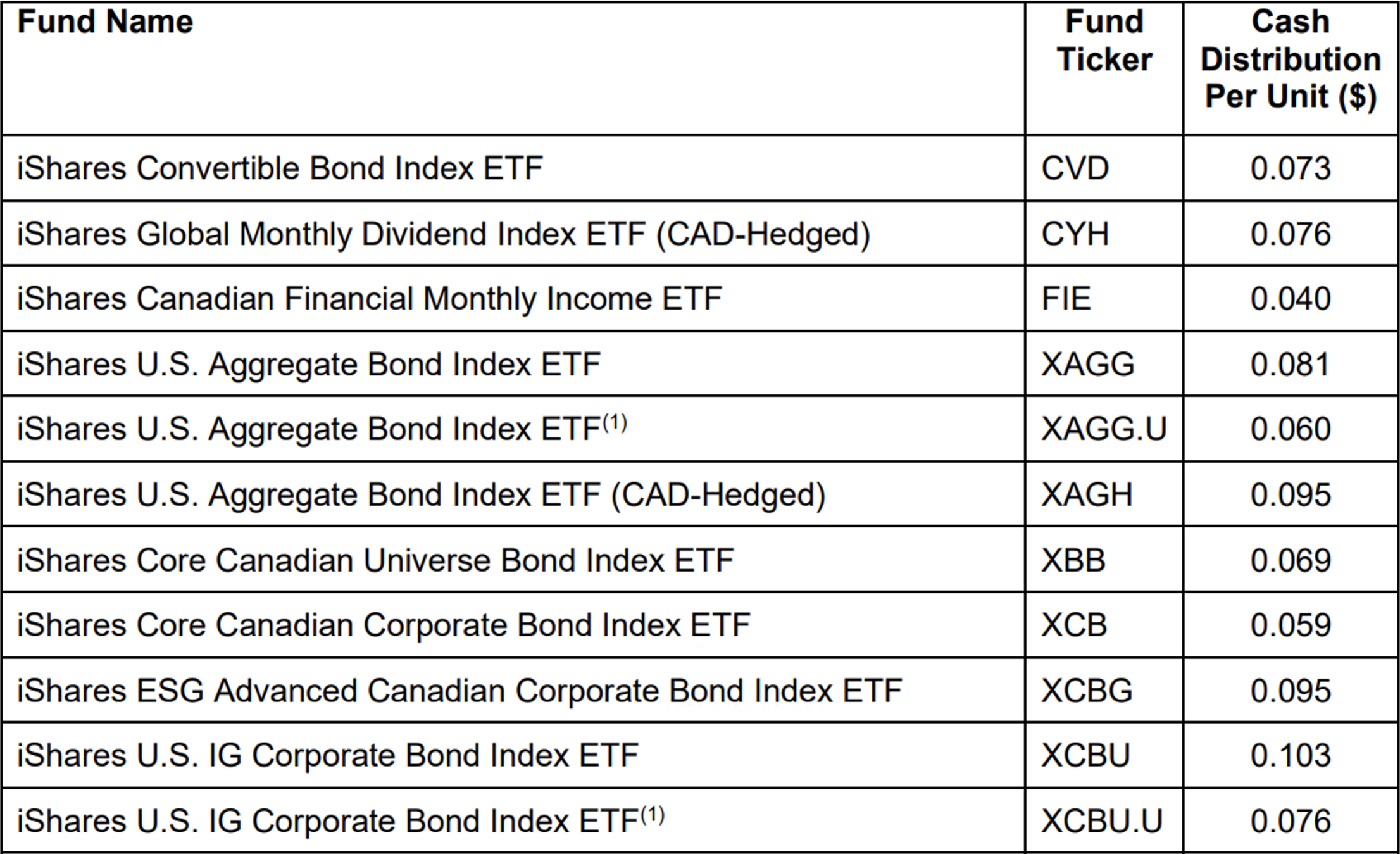 monthly basis, as well as iShares S&P/TSX 60 Index ETF. Unitholders of record of a fund on May 25, 2023, will receive a cash