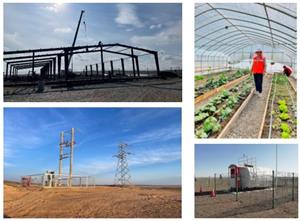 Clockwise from Top Left – Core Processing Facility, Greenhouse, Drinking Water Filtration System, 35kV Grid Power Supply