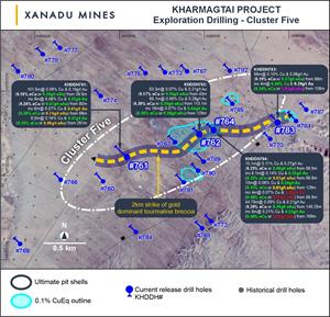 TORONTO, Nov. 16, 2023 (GLOBE NEWSWIRE) -- Xanadu Mines Ltd (ASX: XAM, TSX: XAM) (Xanadu, XAM or the Company) is pleased to provide an update on deep and shallow exploration drilling currently underway at the Kharmagtai Project in Mongolia, being undertaken with the Company’s joint venture partner Zijin Mining Group Co., Ltd. (Zijin). Xanadu’s experienced exploration team is currently operating three (3) diamond drill rigs which are focused on delivering new discoveries outside the current Mineral Resource Estimate (MRE) at the Kharmagtai copper and gold project.