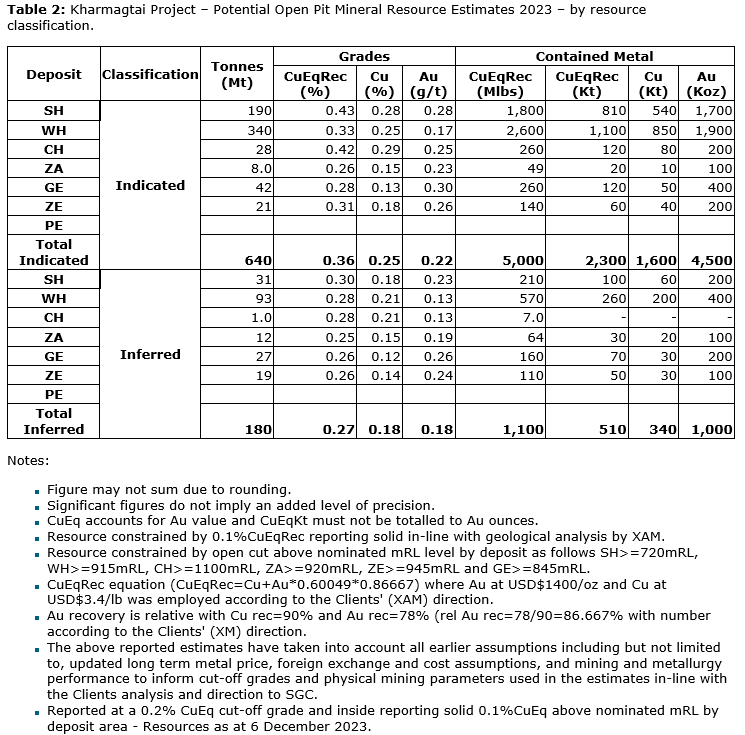 All six deposits within the updated mineral resource estimate for Kharmagtai are open and require additional drilling to determine the boundaries of each deposit.