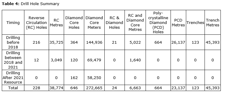 Significant drilling has taken place since the last resource in 2021, which has driven the increase in resources. An attached table shows the drilling metre difference between the 2021 and 2023 resource.