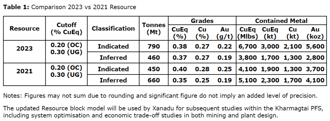 "During the December Quarter, Xanadu announced an updated Mineral Resource Estimate for our Kharmagtai Copper-Gold Project, which represents a major step for the PFS. The updated MRE meets our expectations by upgrading the resource classification of the mineralization within previously defined pit shells to Indicated, and importantly it increased size of the higher-grade zones by 25 per cent to 125Mt, a key factor driving Kharmagtai project economics. In parallel we effectively progressed other key aspects of the Kharmagtai PFS including metallurgy, infrastructure, tailings facility, water reserve and sterilisation drilling towards our Q3 CY2024 delivery date.