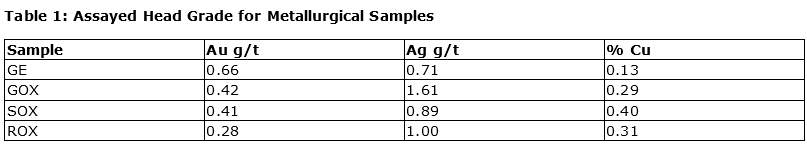Assayed head grades for the four samples are shown in an attached table.