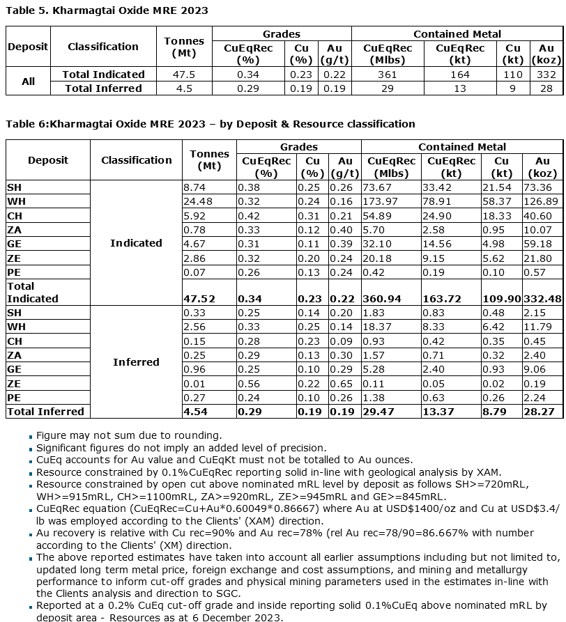 The 2023 mineral resource estimate (MRE) included a 52-million-tonne subset of partially oxidized material at grades comparable with the underlying sulphide deposit, which could be amenable to heap leach rather than being treated as waste. The oxide subset of the 2023 MRE is shown in the attached tables.