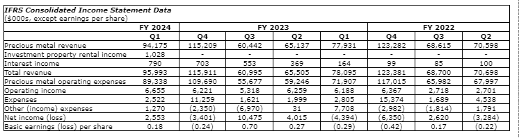 "Goldmoney Inc. has embarked on a new phase as a listed company, owning a diversified group of businesses interests that are tethered to the real economy. I encourage shareholders to carefully review our financial reports this quarter as they now provide the clearest picture of the current state and health of our company. With the launch of Goldmoney Properties, our income statement now breaks out our sources of revenue by division, grouping precious metals operations and all their associated costs under one line item. The figure shown as total operating income reflects the net cash provided by our operational businesses over the quarter. Below that line, in the expenses section, are two cash expense line items: general and administrative, which reflects the costs of being a public company, our C-suite salaries and bonuses, and technology and development costs. The other items are non-cash expenses such as depreciation and amortization, stock-based compensation, and impairment of goodwill and intangibles. Below this line, we now disclose all of the balance sheet fair-value movements from precious metals to investment property to FX [foreign exchange] movements.