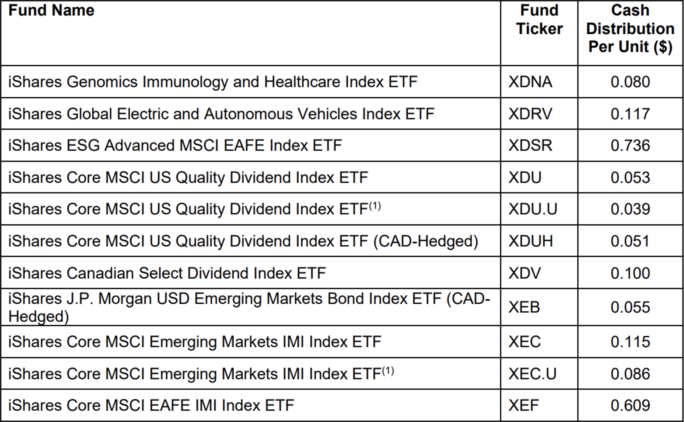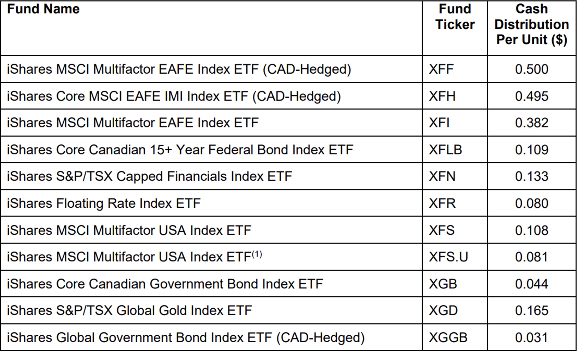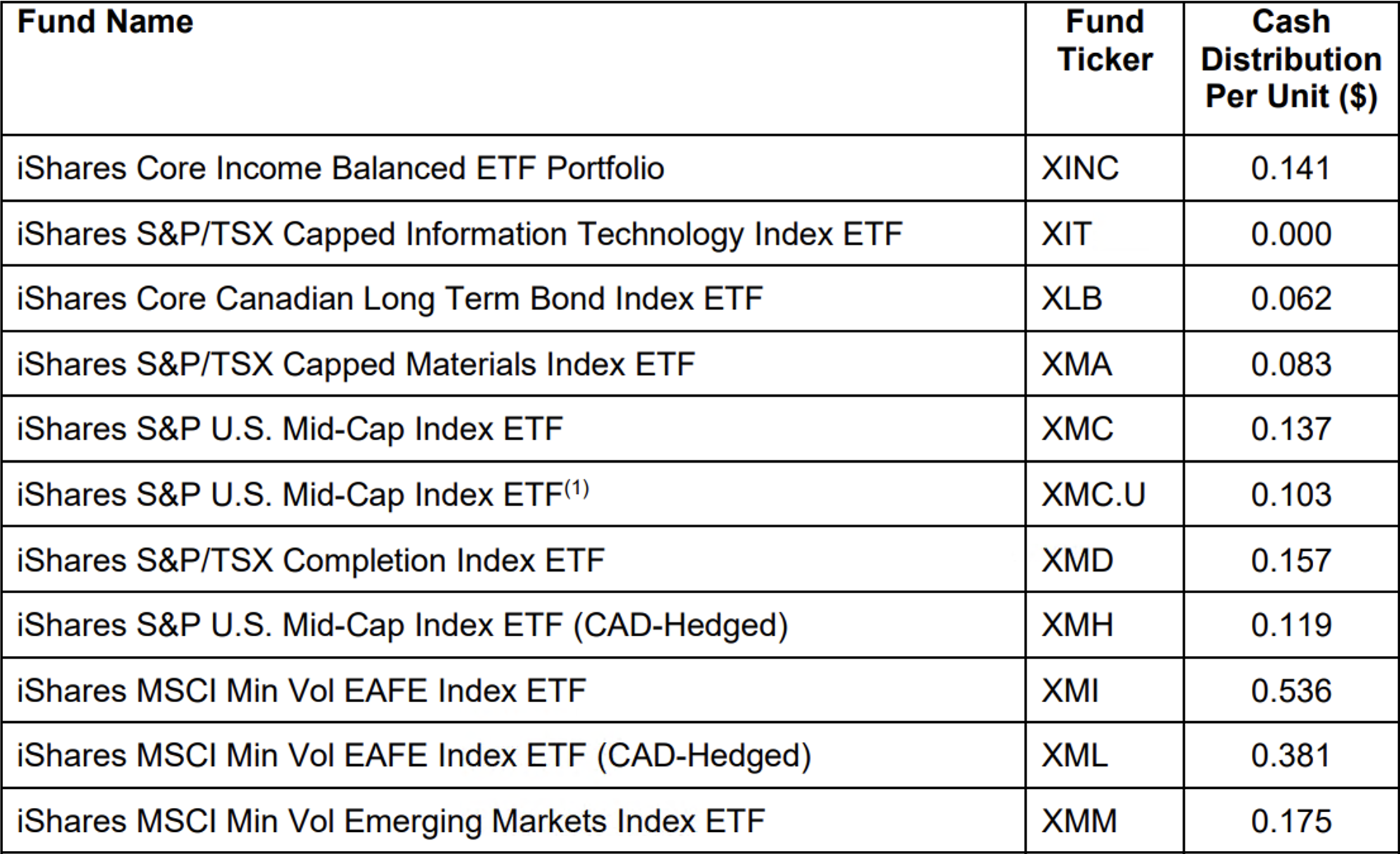 BlackRock Asset Management Canada Ltd. has declared the June, 2023, cash distributions for the iShares exchange-traded funds listed on the Toronto Stock Exchange or Cboe Canada which pay on a monthly, quarterly or semi-annual basis, as well as a reinvested distribution for iShares Canadian Real Return Bond Index ETF. Unitholders of record of a fund on June 27, 2023, will receive a distribution payable in respect of that fund on June 30, 2023.